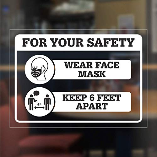 - PACK CONTENTS. Pack includes two For Your Safety - Wear Face Mask, Keep 6 Feet Apart clear window decals of size 5" x 7" each.